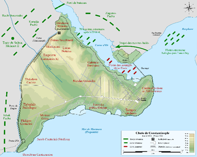 De val van Constantinopel gebeurde op 29 mei 1453, en dit was het einde van het Byzantijnse rijk. Constantinopel was in zijn geschiedenis al 12 keer belegerd, en al 2 keer ingenomen. De eerste keer in 1204 tijdens de 4de Kruistocht dor Frankische legers, en de tweede keer in 1261 weer door het keizerrijk Nicea. Hierna was Constantinopel al erg verzwakt, en was het makkelijk voor het Ottomaanse Rijk om Constantinopel voor zijn 3de keer over te nemen. Er waren hier verschillende motieven voor, zoals religieuze motieven, maar ook politieke en economische motieven. Dit wordt in de geschiedenis gezien als de val van Constantinopel.